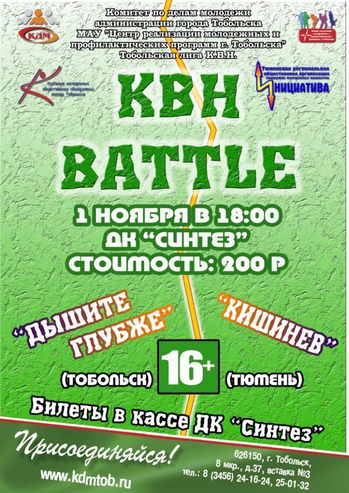 1 ноября в ДК «Синтез» г. Тобольска состоится КВН Батл