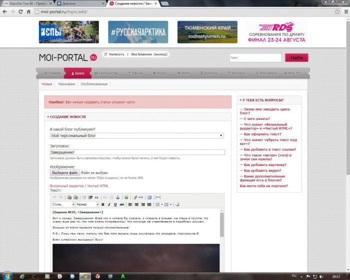 Вот и конец. Завершение! Всё что я хотела бы сказать, я сказала в отзыве на стене группы Активных выходных вконтакте. Но скажу еще раз то, что мне очень понравился этот проект! Что никогда не учавствовала в подобных штуках.