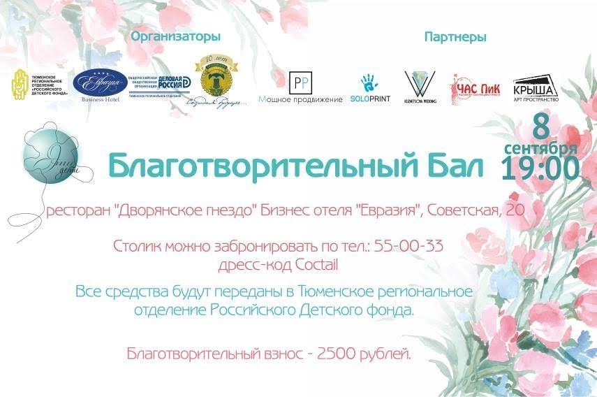 Организаторы социального проекта «Эти дети», в рамках которого будет проходить Бал, отмечают, что мероприятие такого формата стало важным культурным событием Тюмени и это еще раз доказывает, что современные предприниматели достойно продолжают традиции русского меценатства и благотворительности.