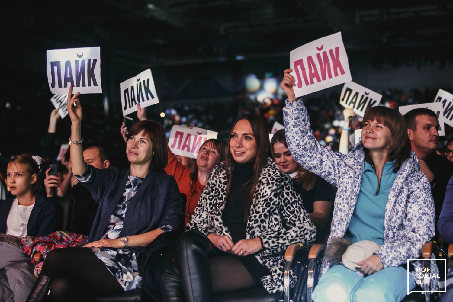 В партере перед сценой и на секторах устроили небольшие флешмобы: на песне «Шар земной» сидевшие в VIP-секторе поднимали бумажную звездочку, а на хите «Лайки» размахивали разноцветными листочками, которые с надписью «лайк». Зрители живо реагировали на просьбы артистов: подпевали в нужных местах. Фонарики на телефонах уже включали по своему желанию, а немногочисленные ретрограды использовали зажигалки. На бис БИ-2 вызывали организовано: дирижёр руководил интенсивность хлопков зрителей на стадионе.