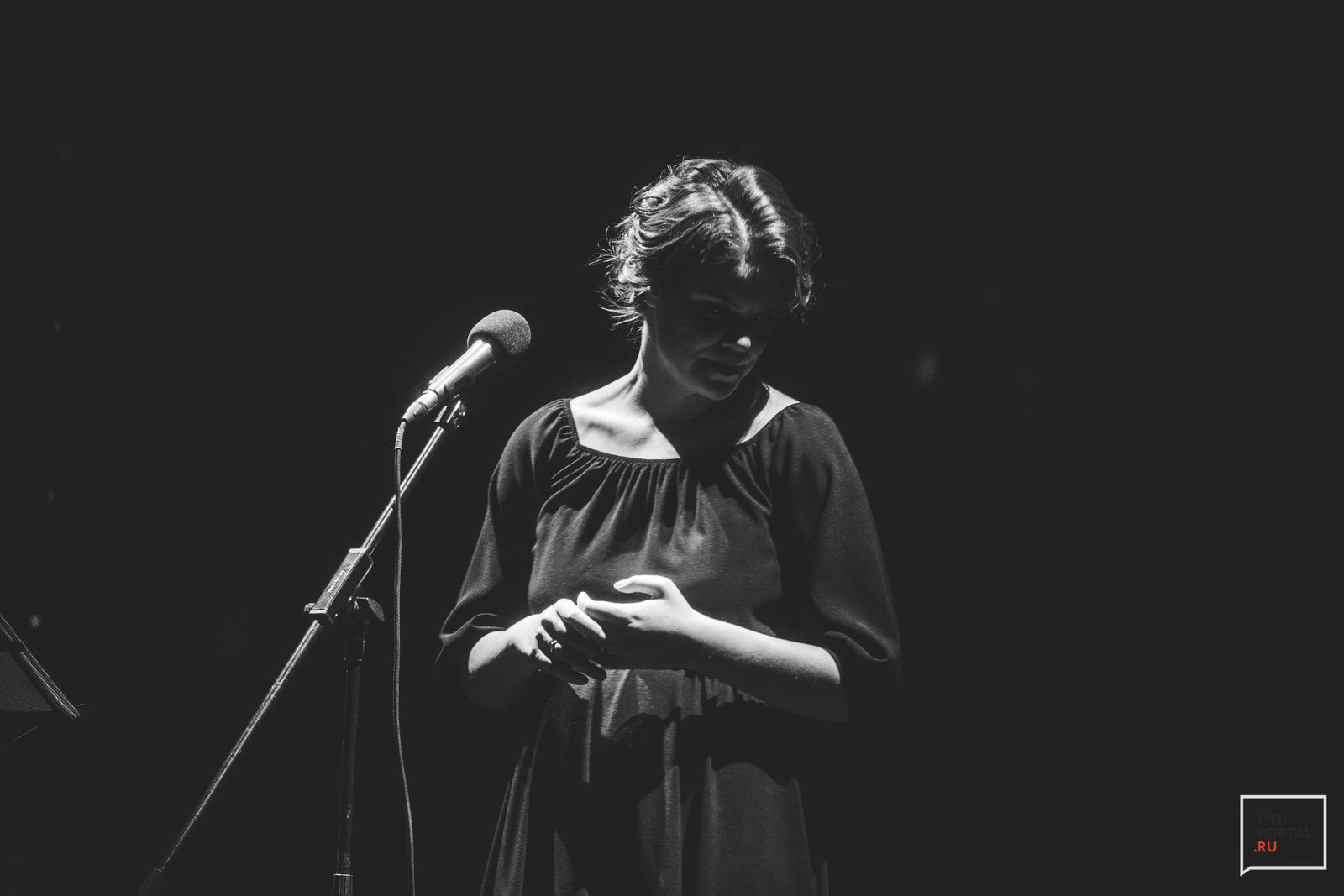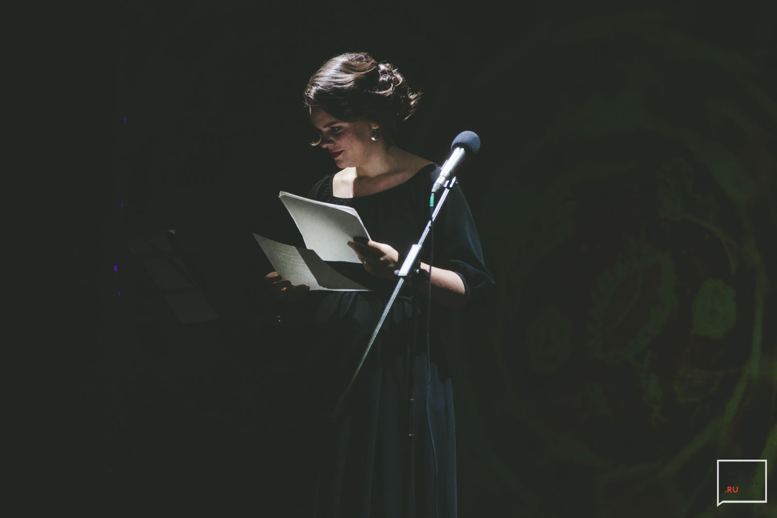 Задумываюсь о том, что поэтический моноспектакль – отдельный жанр, который для нас все еще непривычен. Мы знаем, как вести себя в кино, в театре, на концертах и выставках, но восприятие стихотворного слога, несмотря на богатую литературную историю страны, все еще в новинку. К сожалению, такие выводы делаю, исходя из множества разговоров и ослепляющих вспышек смартфонов позади меня.