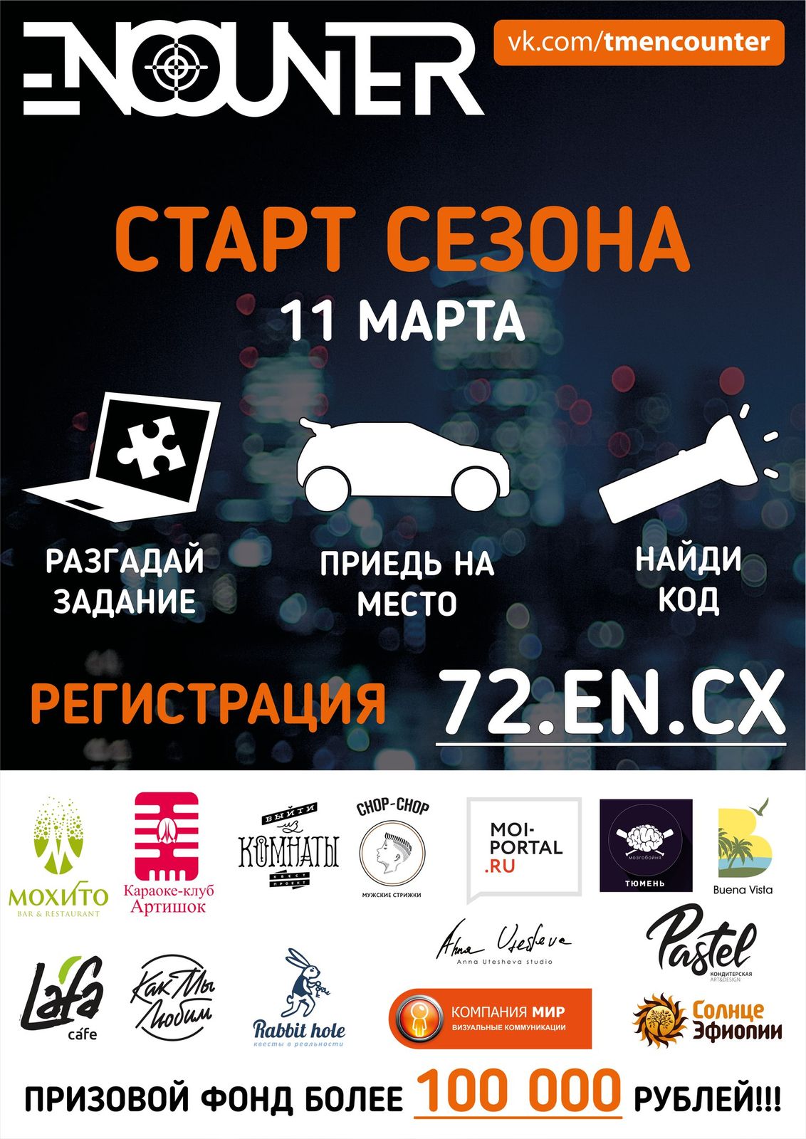 В играх может поучаствовать каждый. Для этого нужно собрать команду из 3-5 друзей на исправном автомобиле. Возьмите с собой фонарики и гаджеты с выходом в интернет.