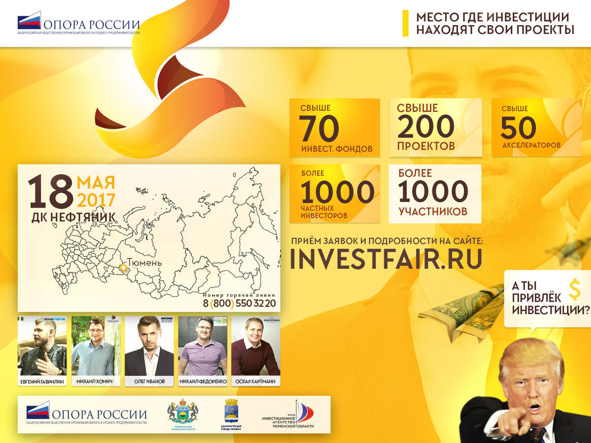 18 мая состоится «Всероссийская ярмарка инвестиций» - на одной площадке соберутся более 1000 предпринимателей и инвесторов, более 200 проектов будут представлены инвесторам. «Ярмарка инвестиций» - это возможность: