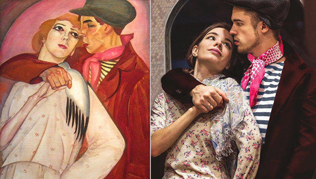 Колоритно выглядят персонажи картины Бориса Григорьева «Пара (Жиган и проститутка)» (1917).