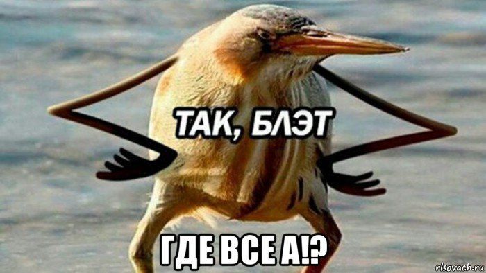 «Так, блэт» - это мем с птицей (волчок) и пририсованными руками. Поза птицы и сама фраза «Так, блэт» означает недовольство чем-то. Мем объединяет два других. Сама картинка имеет исходной точкой знаменитой фотошоп-битвы 2009 года, где пользователи должны были пририсовывать руки разным птицам.