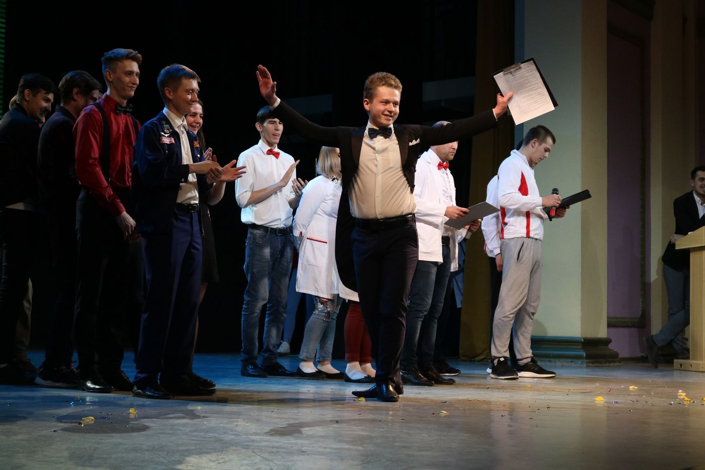 На сцене встретились команды «Панда» и «Тюменский переулок» из ТюмГУ, «Праздник» (ГАУСЗ), «ЗАПСИБ» (Западно –Сибирский колледж), «Сердечные люди» (Сборная Тюменского кардиоцентра и Тюменского медицинского колледжа), «О Роза, Роза» (г. Тюмень)