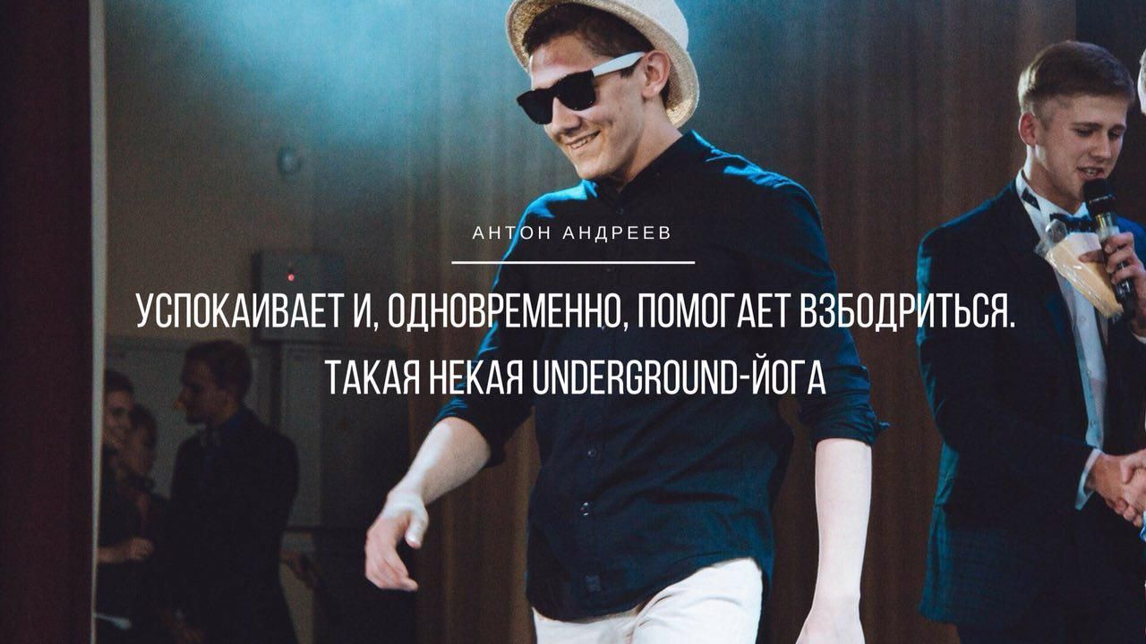Как вы понимаете, в баре лучше отдыхать с друзьями, и все важные вопросы решаются именно там. Антон Андреев — товарищ по несчастью, а также любопытный человек, который умудряется участвовать в журналистике, музыке и хореографии или, по-другому, везде суёт свой нос.