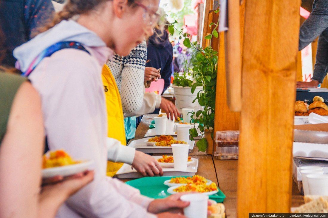 На фестивале можно будет недорого поесть вкусной, разнообразной вегетарианской еды в двух столовых. Продажа горячих и холодных напитков, выпечки и сладостей будет организована еще на нескольких точках, в чайных и кофейных.