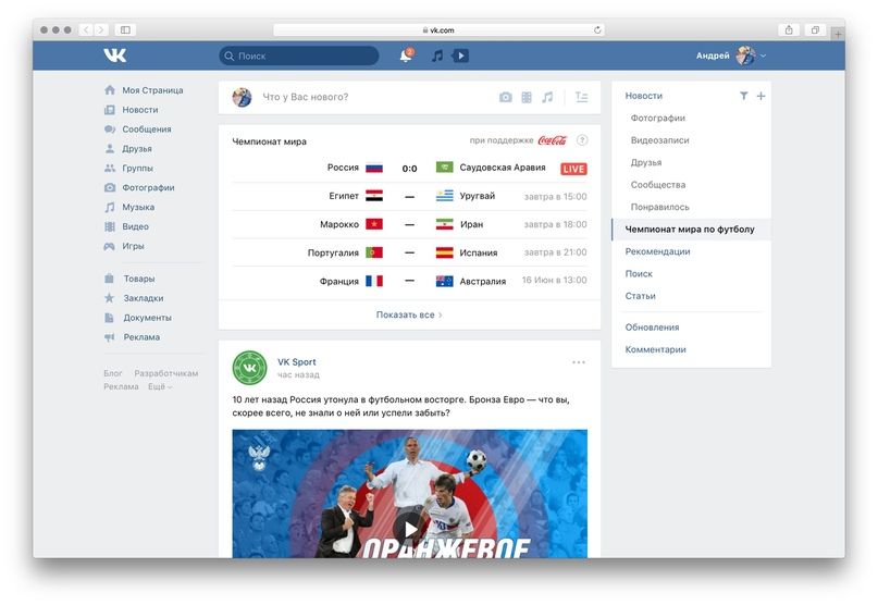 «Любой пользователь может включить специальную вкладку, где на протяжении всего чемпионата мира будут собираться новости и фоторепортажи, интервью и аналитические статьи от официальных сообществ