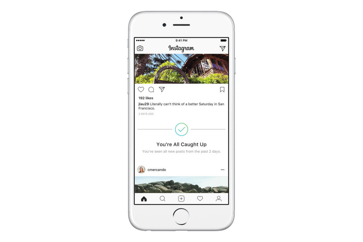 После того как пользователь посмотрит все посты за 48 часов, на экране появится галочка с сообщением «You're all caught up» («На этом пока все»). После этого оповещения старые и новые фотографии будут идти вперемешку.