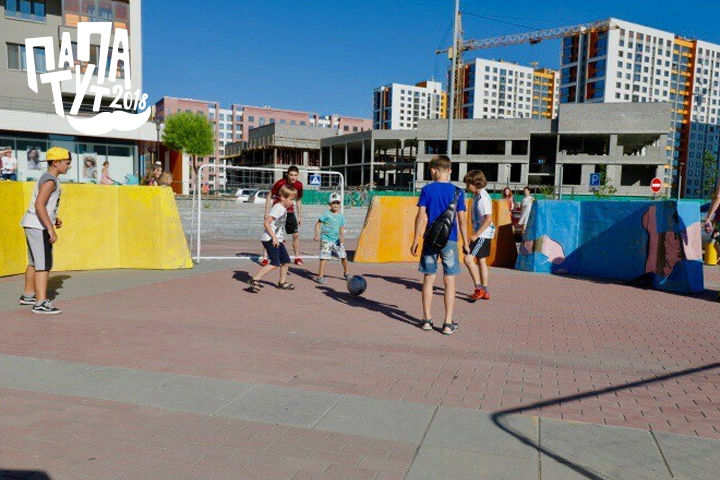 Семейный выходной прошел при поддержке детского футбольного клуба «Бомбардир», центра семейных и молодежных инициатив «База героев» и проекта «Капитаны двора».