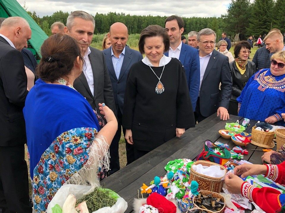 Александр Моор и Наталья Комарова посетили различные площадки, познакомились с традициями народов Югры. Александр Моор попробовал блюда северной кухни, морошку, северную рыбу и оленину.