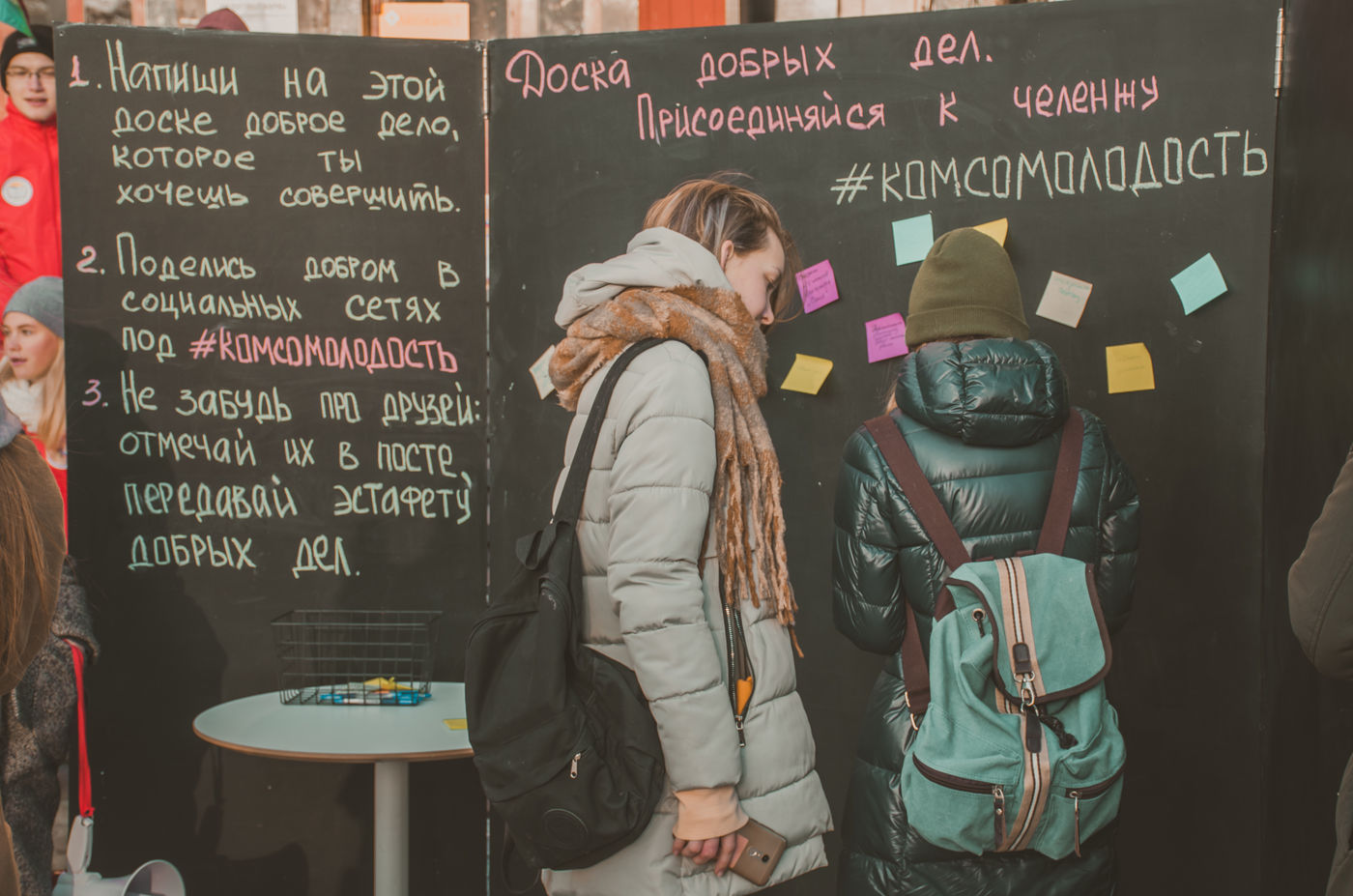 Возле памятника была установлена меловая доска добрых дел. Жители города могли рассказать о добрых делах, которые они планируют совершить до конца 2018 года. Также подобные доски были установлены в городских общественных пространствах в мультицентре «Моя территория» и молодёжном театральном центре «Космос».