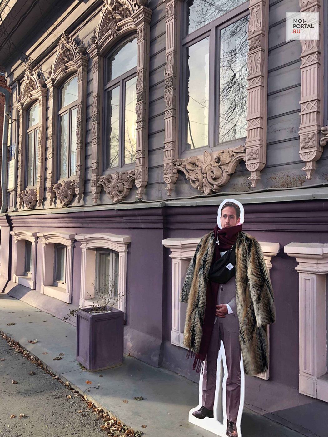 Для того чтобы актер не замерз, команда Портала надела на него шарф и шубу, а после отправились на экскурсию. В свой день рождения Райан Гослинг побывал на набережной реки Туры, «заглянул» во дворец культуры «Нефтяник», сфотографировался у старинных деревянных домов и прокатился на общественном транспорте.