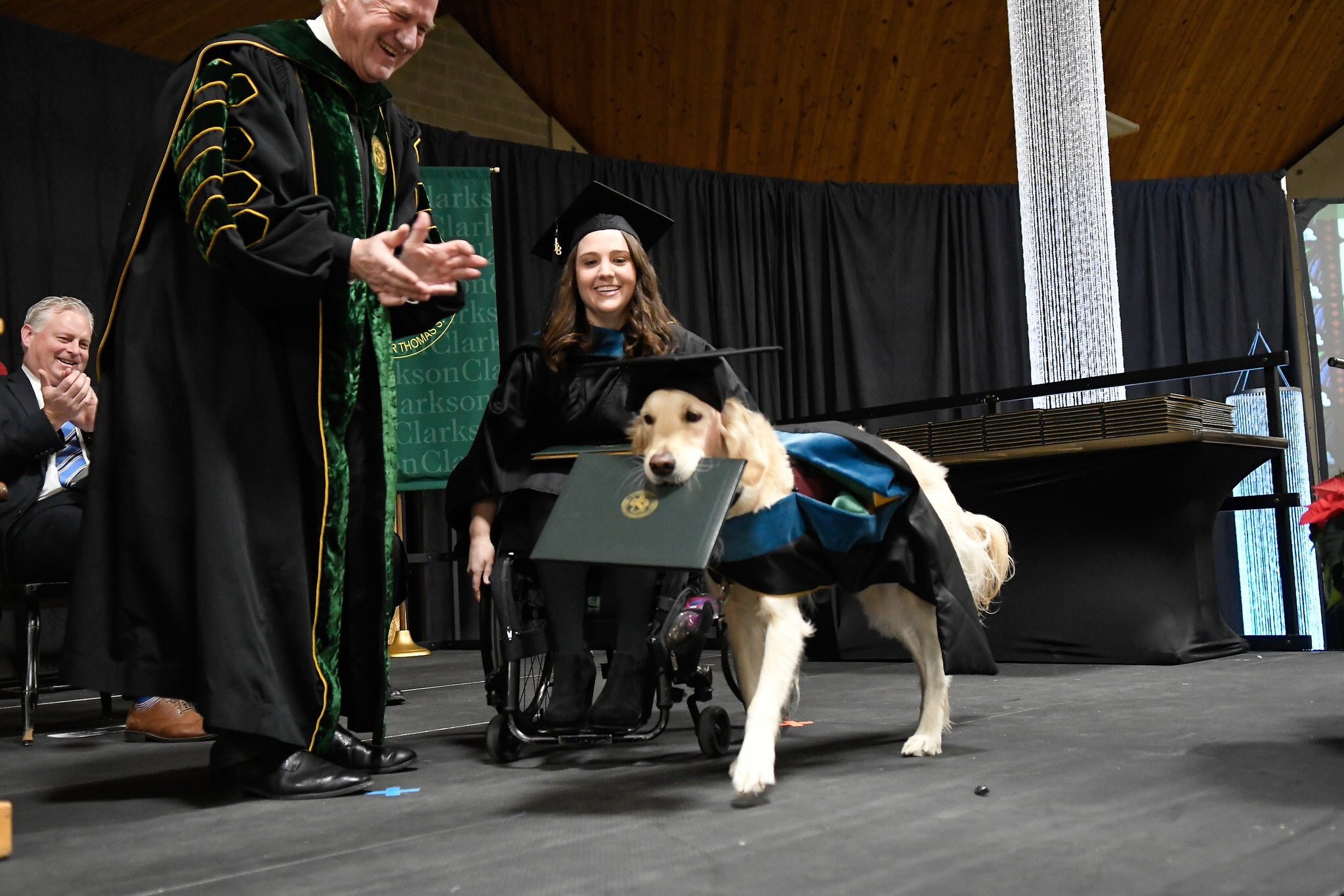 Девушка совсем недавно получила диплом о высшем образовании по эрготерапии - медицинская область изучающая ежедневный уход за пациентами. В торжественной обстановке документ вручили и Гриффину. Собаку похвалили за «экстраординарные усилия» и отметили преданность своей хозяйке.
