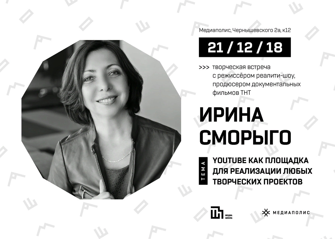 В пятницу, 21 декабря, в 19:00 выступит Ирина Сморыго – продюсер популярного в интернете ремонтно-кулинарного шоу «Сделано со вкусом», сообщает пресс-служба «Медиаполиса». Ирина поведает о секретах своей работы на YouTube и о том, почему многие телевизионщики сейчас стремятся его освоить. Участники узнают множество лайфхаков продюсирования онлоайн-проектов, а также выяснят, сколько реально заработать YouTube-блогеру в 2018 и 2019 годах.