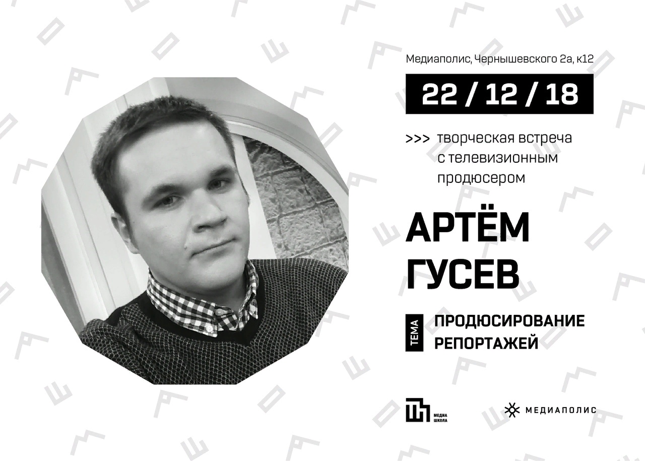 На следующий день, 22 декабря, в 17:00 тюменцев приглашают на встречу с продюсером сотни репортажей для ТВ – Артёмом Гусевым.