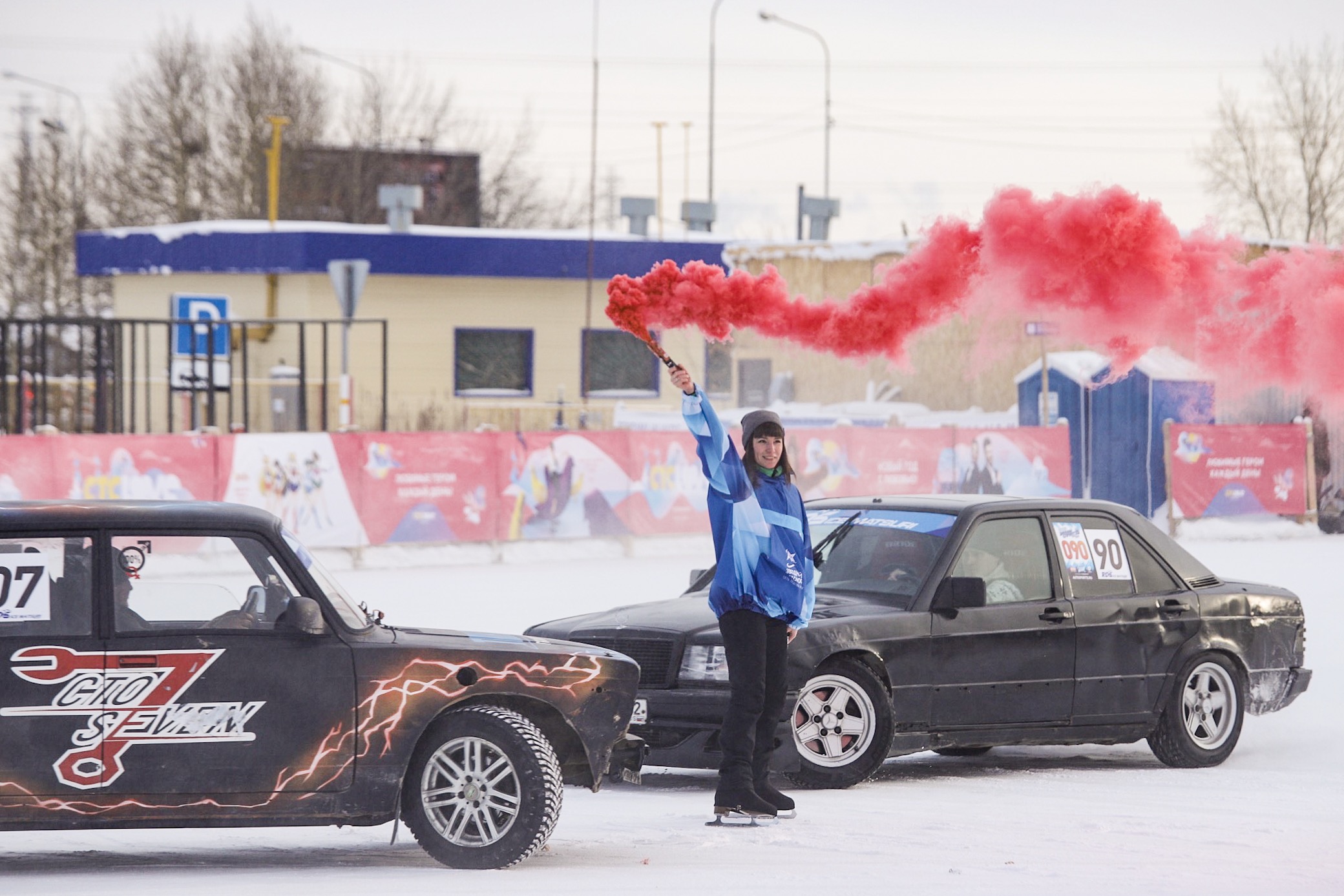 На ледовую площадку, чтобы продемонстрировать собравшимся своё мастерство, вышли представители картинг-центра Live Drive. Один использовал для этого «Жигулей», другой – Mercedes. Дрифт – один из самых зрелищных видов гонок, отмечают организаторы. Пилоты показали не только маневры на зеркальном гладком льду, но и пощекотали нервы зрителям, когда кружили рядом с девушкой, устроившей дымовое шоу.