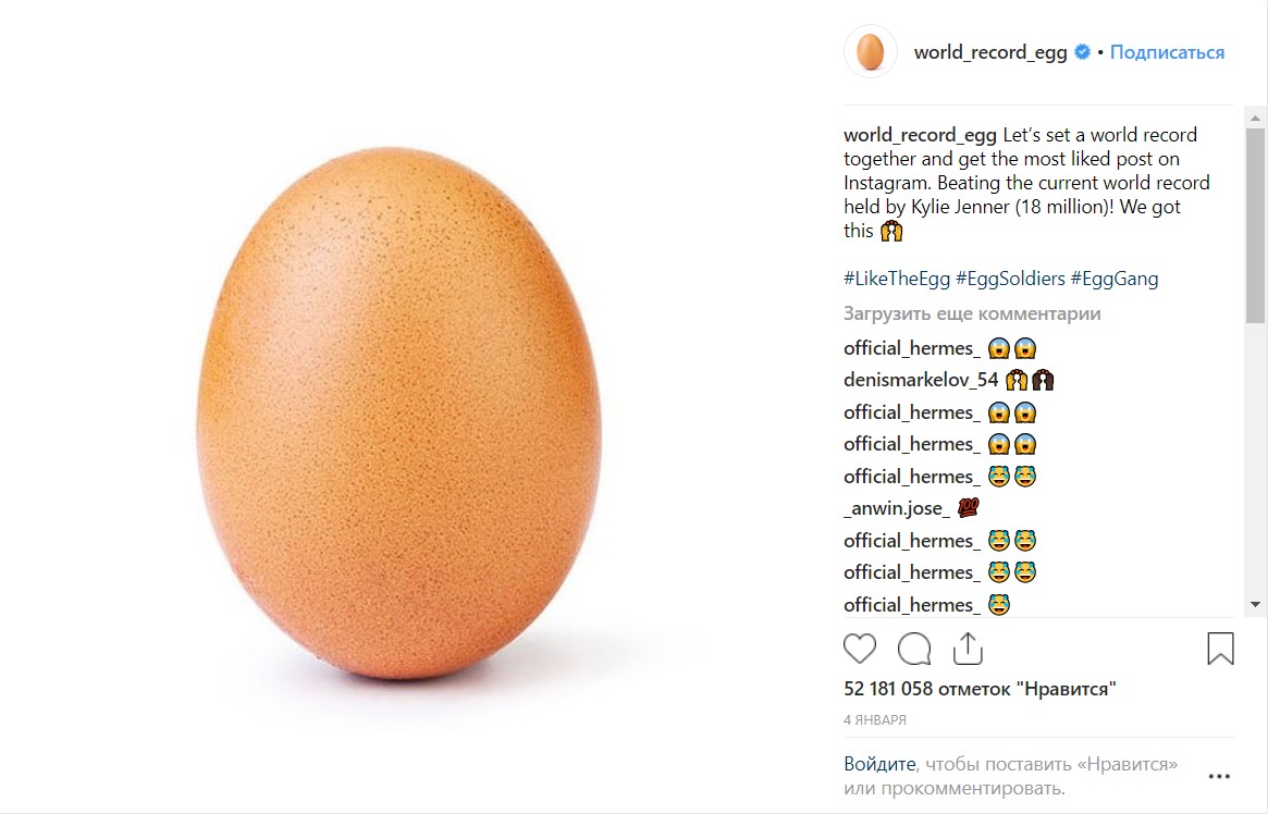 Однако сегодня, 4 февраля, в аккаунте появилось новое видео, в котором яйцо растрескивается, а после этого распадается на куски — и это всё из-за давления соцсетей. «Если вам тоже нелегко, поговорите с кем-нибудь», — говорится в ролике. После этого появляется ссылка на сайт некоммерческой организации «Mental Health America», которая помогает людям с психологическими проблемами. «Если вы тоже страдаете, поговорите об этом с кем-то, — говорилось в сообщении. — Мы знаем, что делать».