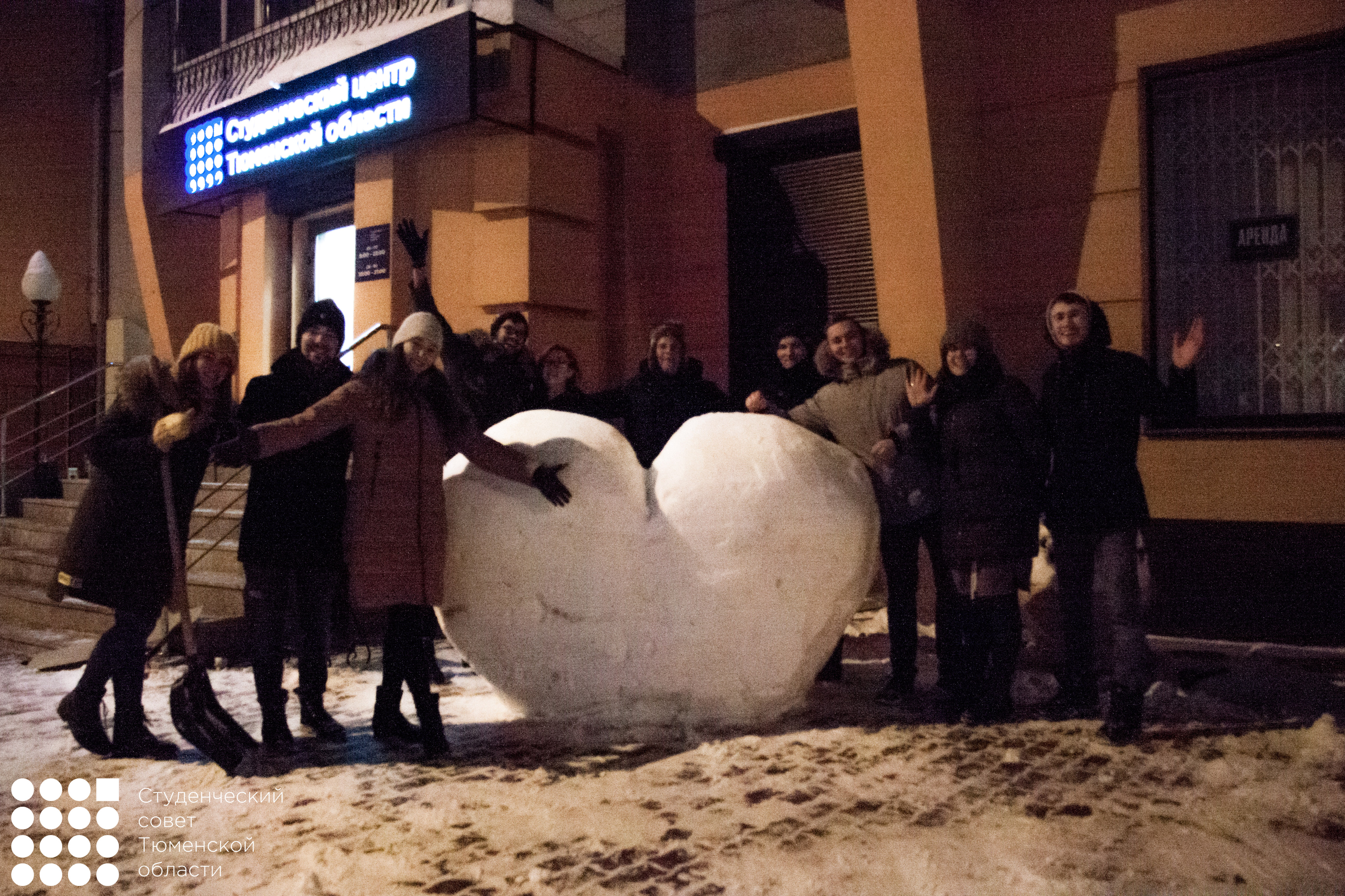 Практически 2 часа ушло на то, чтобы дюжина студентов получила из снега фигуру сердца Участникам понадобилось 4 м³ снега и самодельная форма, чтобы создать снежную скульптуру. После лепки сердца участники продолжили праздник в Студенческом центре Тюменской области, 10 студенческих пар поучаствовало в интеллектуальной битве, тематика вопросов была связана с праздником, влюбленные угадывали песни и стихи о любви, а также соревновались в общей эрудиции. После квиза пары проверяли на совместимость и предложили исполнить несколько композиций о любви в караоке для своих возлюбленных.