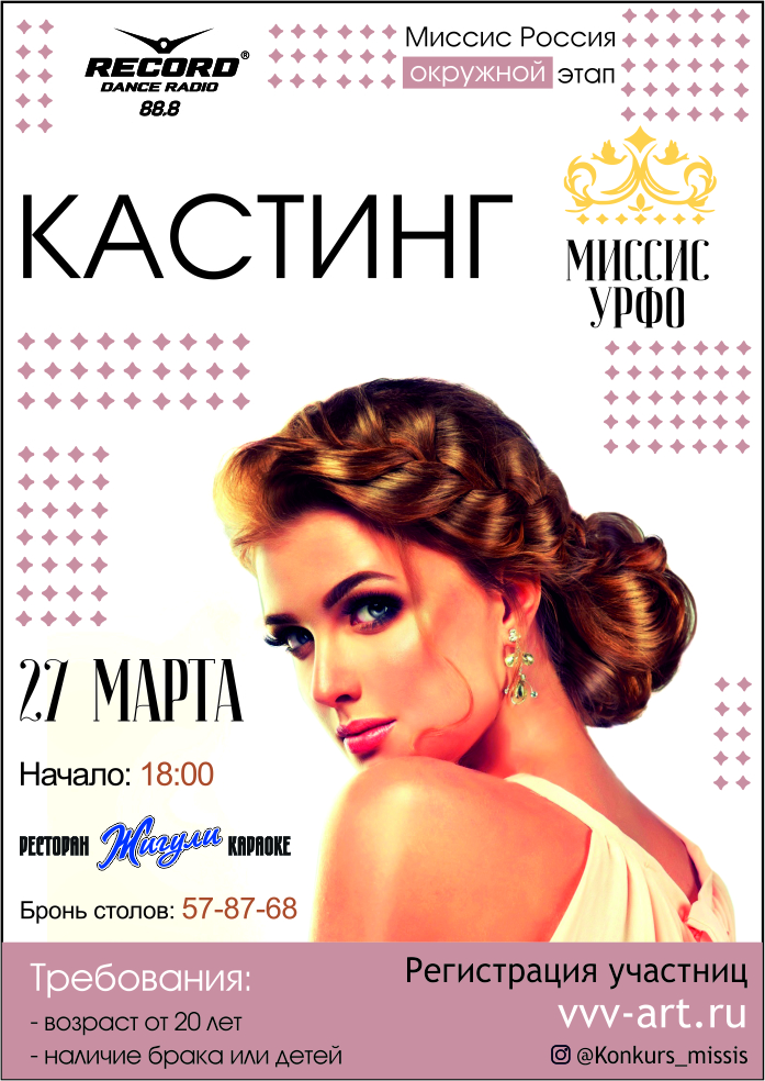 Для участия в конкурсе дамам нужно лишь заполнить анкету на официальном сайте www.vvv-art.ru, а затем ждать звонка или сообщения от оргкомитета конкурса.