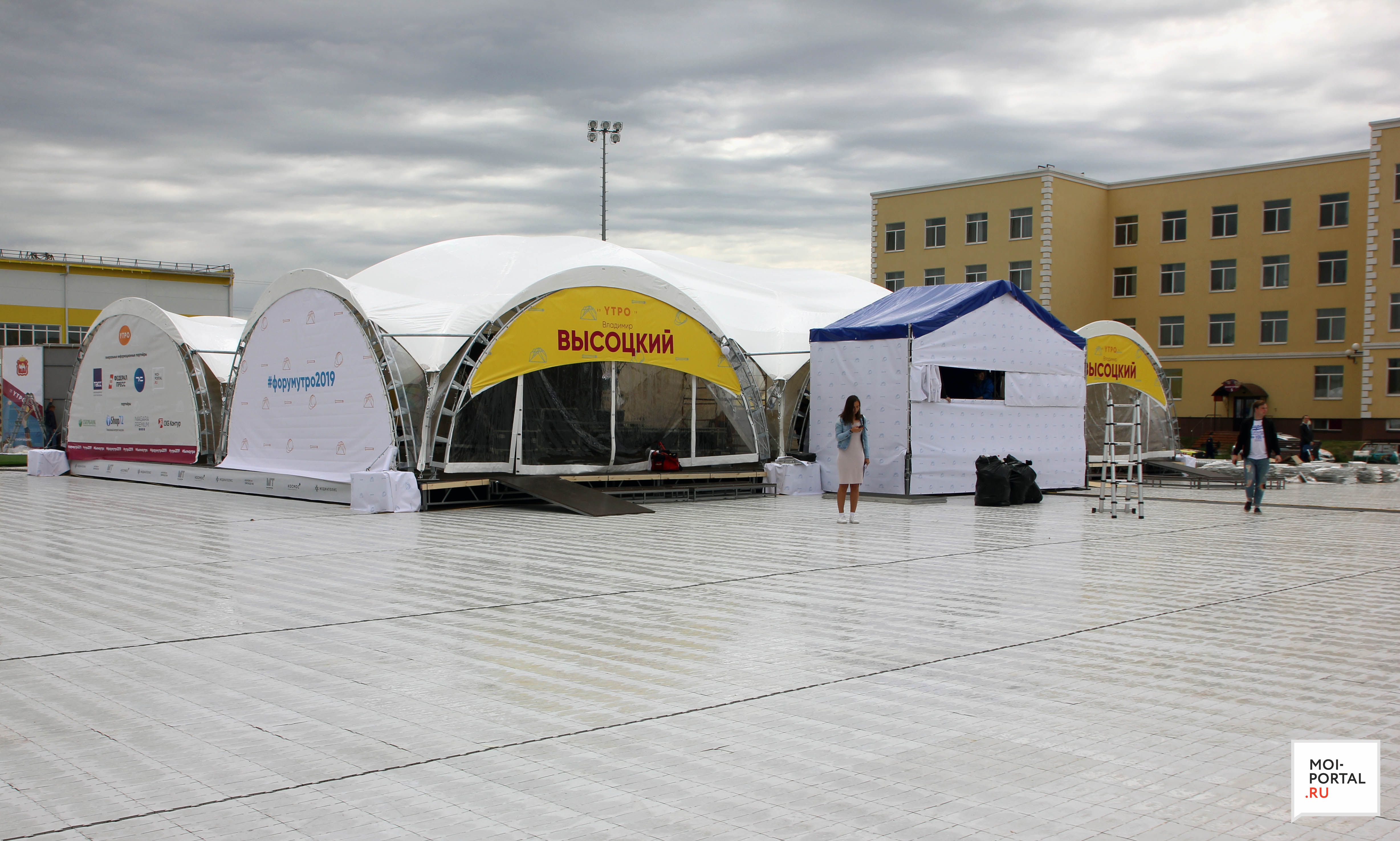 Сейчас в арт-деревне, которая располагается в Тюменском президентском кадетском училище, заканчивают возводить главную сцену, коворкинг, фудкорд, сувенирные магазинчики, спортивную базу, а также шесть шатров от ХМАО, ЯНАО, Тюменской, Челябинской, Курганской и Свердловской областей. Причём в честь Года театра каждому из них форумчане решили присвоить имя российского деятеля культуры. Для шатра Тюменской области жители выбрали имя Владимира Высоцкого.