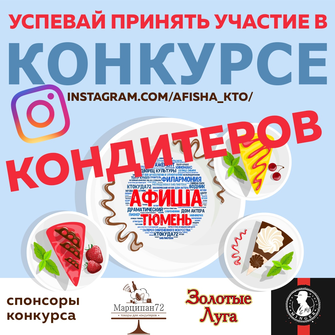 Чтобы принять участие в конкурсе, тебе необходимо выполнить несколько условий: быть подписанным на @afisha_kto; поставить лайки последним трем публикациям на момент размещения своего кондитерского изделия; выставить одно фото своего лучшего кондитерского изделия с описанием и подписью «Я участвую в конкурсе "Лучший кондитер Тюмени"» от @afisha_kto и хештегами #ктокуда72#лучшийкондитертюмени#афишакондитер, а также не забудь отметить аккаунт @afisha_kto в сторис.