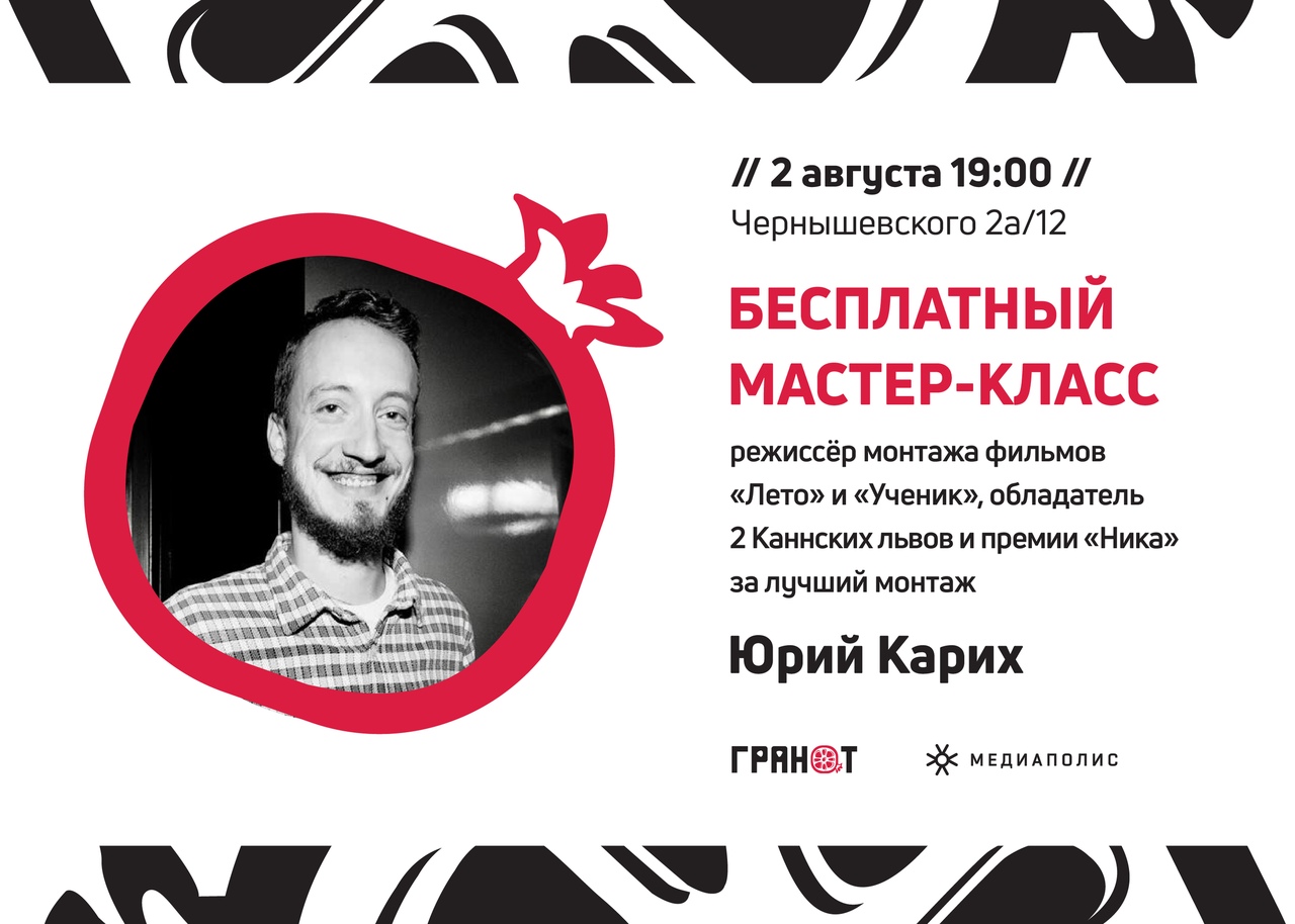 На мастер-классе Юрий расскажет участникам встречи о своих работах, монтаже, покажет приёмы и поделиться собственным опытом.