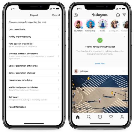Для того, чтобы оповестить о фейке, пользователю будет достаточно кликнуть на три точки в правом верхнем углу поста Instagram, отметить его как «несоответствующее» и далее как «фейковое». После проверки командой фактчекеров Instagram сообщению может быть официально присвоен статус «фейкового».