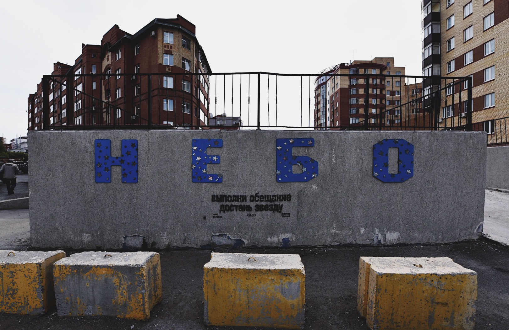 На фестивале «Морфология улиц» стритартер из Перми создает на стене дома 15-ти метровый рисунок «Взгляд в прошлое» в стиле киберпанк. А художник из Екатеринбурга установил буквы, складывающиеся в слово «Небо», и прикрепил к ним звезды.
