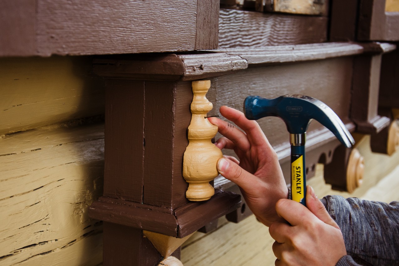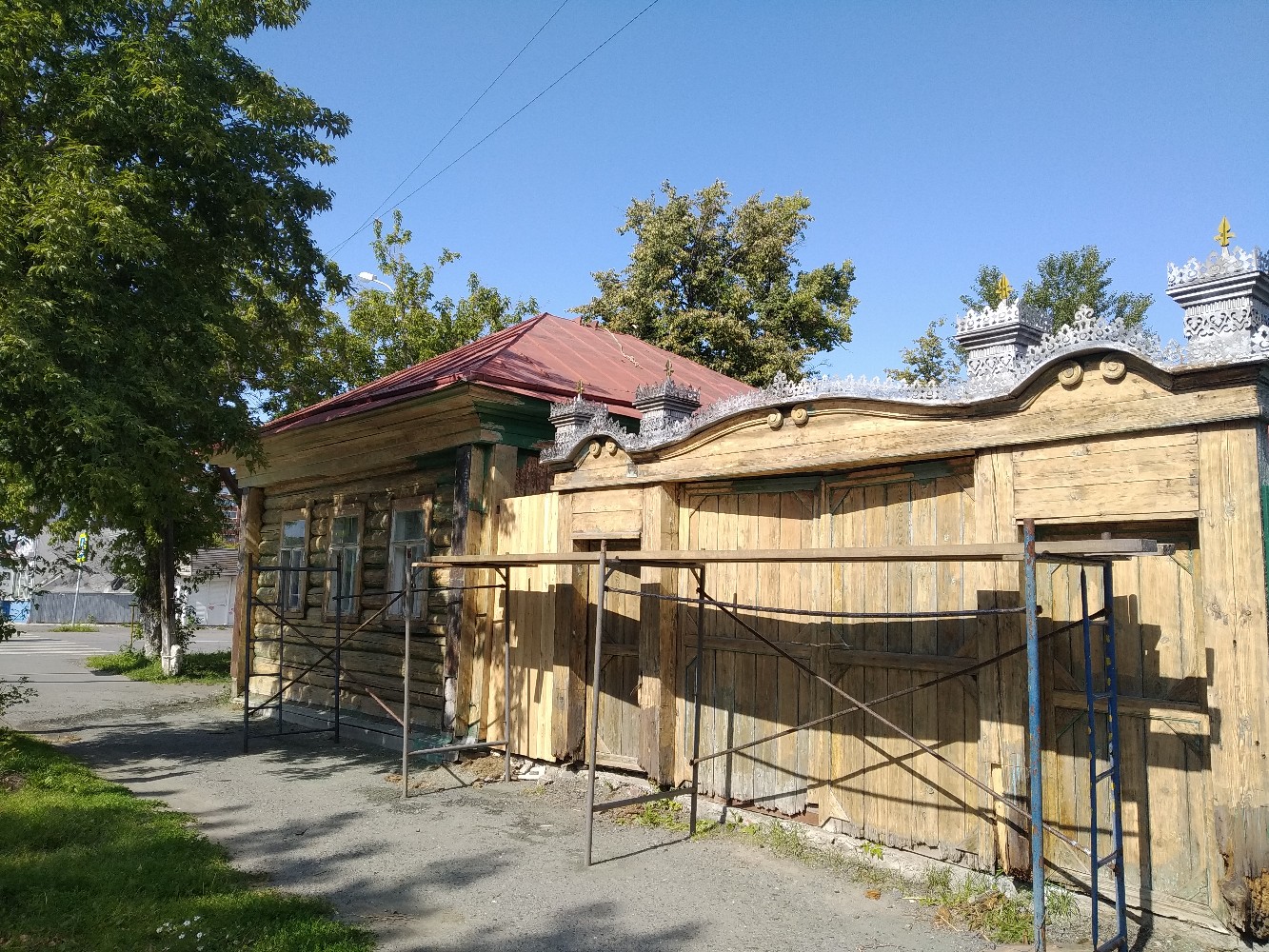 Этот дом уникален тем, что построен в послевоенные годы, имеет богатую деревянную резьбу. Помимо очистки, грунтовки и покраски здания, была восстановлена утраченная резьба и изготовлен новый дымник.