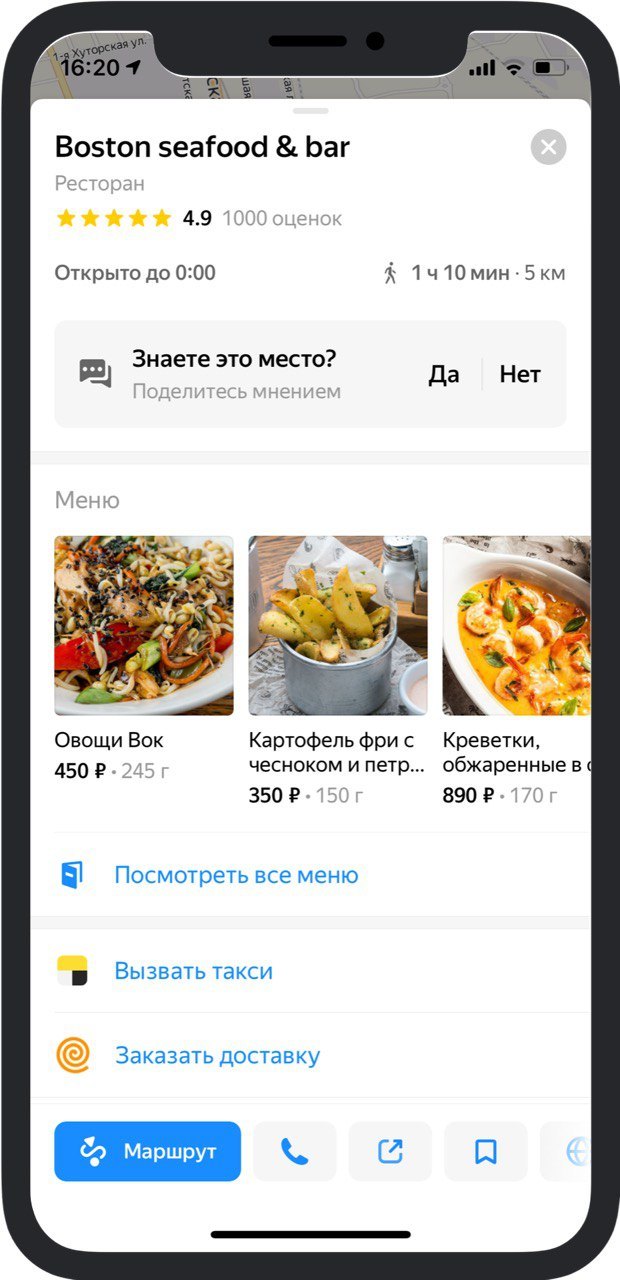 «На «Картах» можно даже найти блюда из меню — например, набрать в поиске борщ или спагетти болоньезе. Во всех заведениях, которые появятся на карте, можно изучить блюда подробнее и посмотреть цены, чтобы выбрать подходящее кафе. Так же и с услугами: «Карты» подскажут, где делают маникюр поблизости, и покажут, сколько это стоит», — рассказали в «Яндексе».