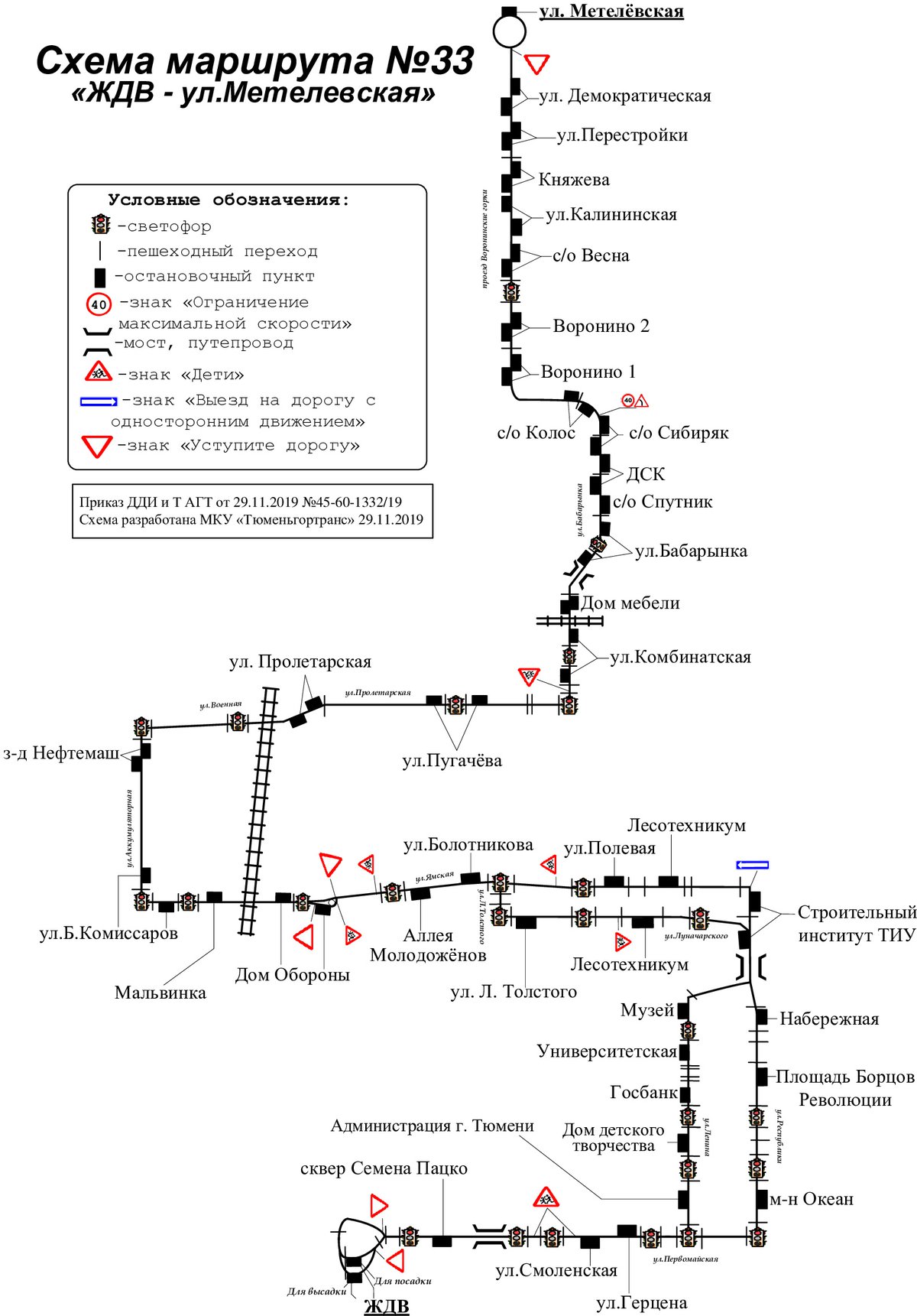 В ней с первого дня следующего года появятся промежуточные остановочные пункты «ул. Демократическая», «ул. Перестройки», «д. Княжева», «ул. Калининская», «с/о Весна», «Воронино 2», «Воронино 1», «с/о Колос», «с/о Сибиряк», «ДСК», «ул. Бабарынка», «Дом мебели», «ул. Комбинатская», «ул. Пугачева», «ул. Пролетарская», «з-д Нефтемаш» (в прямом и обратном направлении), «ул. Метелевская», «с/о Спутник», «ул. Бакинских Комиссаров» (по направлению движения в сторону ул. Барнаульская), «Мальвинка», «ЖДВ», «сквер Семена Пацко» (по направлению движения в сторону ул. Герцена), «ул. Смоленская», «м-н Океан», «Площадь Борцов Революции», «Набережная», «Строительный институт ТИУ» (в сторону ул. Ленина), «Музей», «Университетская», «Госбанк», «Дом детского творчесва», «Администрация г. Тюмени», «ул. Герцена» (по направлению движения в сторону ул. Запольная).