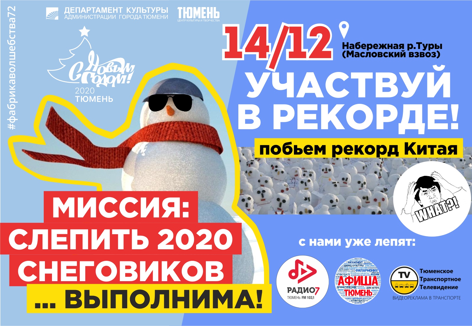Если удастся собрать в одном месте 2020 снеговиков, то фотографии отправят в Книгу рекордов Гиннесса России.