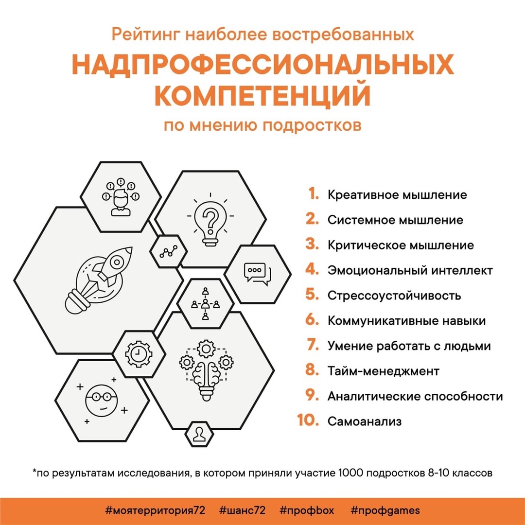 Среди профессиональных предпочтений подростки считают важным навыком умение создавать и обрабатывать фотографии, разрабатывать программы и приложения, заниматься анализом и сбором данных, проводить психологические консультации, изменять внешность других людей. Из надпрофессиональных компетенций, которые выделяют опрошенные, является креативное, системное и критическое мышление, эмоциональный интеллект, стрессоустойчивость, коммуникативные навыки, тайм-менеджмент, аналитические способности и самоанализ.