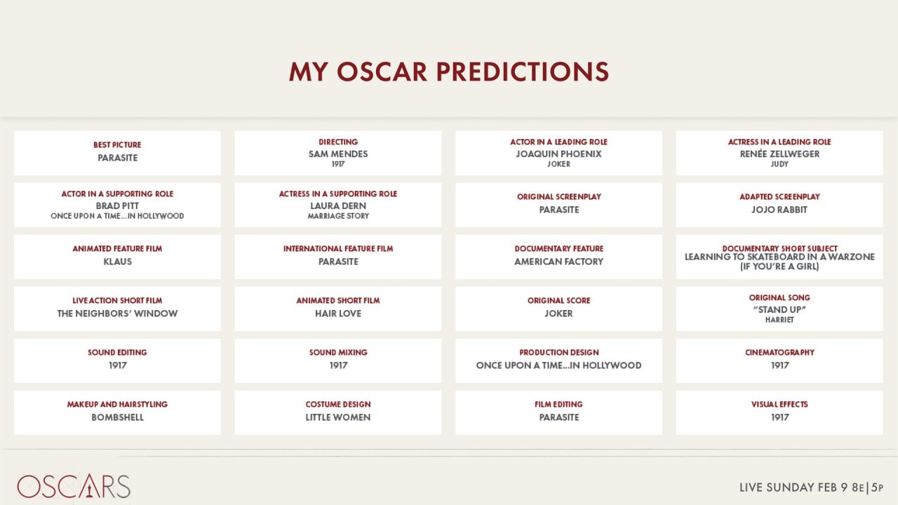 Пост появился в твиттере Киноакадемии 4 февраля, меньше, чем за неделю до премии «Оскар». Твитт тут же удалили, но в сети разлетелась картинка, озаглавленная «Мои прогнозы на «Оскар». В списке перечислены все номинации, включая главные, и вероятных лауреатов.