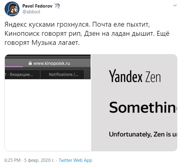 Потеряли связь с сервером и колонки с «Алисой» — они не проигрывают музыку и не могут найти информацию в Сети. В окне сайта «КиноПоиск» также «вечная» загрузка.