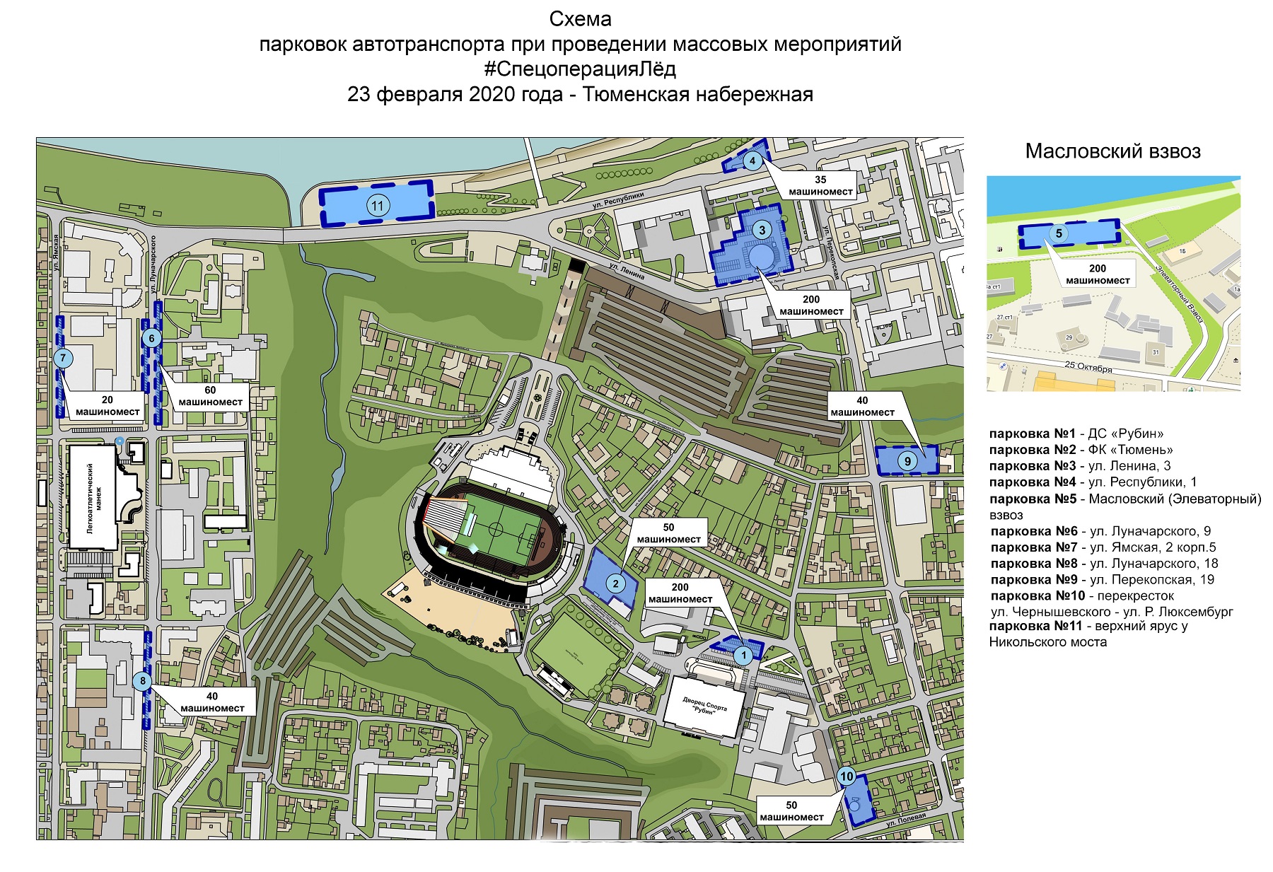 Для зрителей «Спецоперации Лед» парковка на верхнем ярусе в районе Никольского моста будет бесплатной, сообщают в управлении ГИБДД. Тюменцы также смогут припарковать свои автомобили на стоянках по адресам: ул. Ленина, 3, ул. Республики, 1, ул. Перекопская, 19, ул. Луначарского, 18 и ул. Ямская, 2.