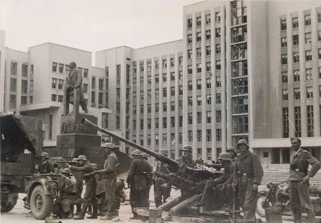 Во время оккупации, которая продлилась 1100 дней и ночей, нацисты организовали гетто. В городе и ближайших окрестностях более 400 тыс. человек погибли от геноцида, около 80% жилых домов было разрушено, пострадали почти все учреждения культуры, науки и образования.