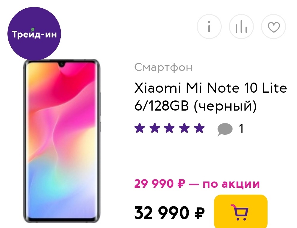 Так, например, Xiaomi Mi Note 10 Lite 6/128 можно приобрести за 29 990 руб. вместо первичных 32 990 руб., — и это без учета скидки по промокоду.