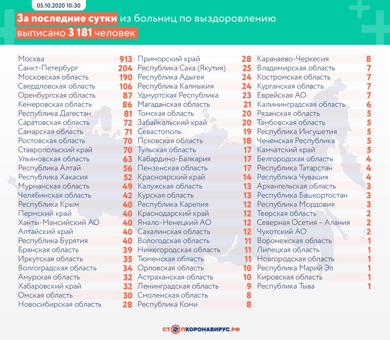В России за последние сутки зарегистрировано 10 888 новых случаев коронавируса. Выписаны по выздоровлении 3 181 человек, погибли — 117.