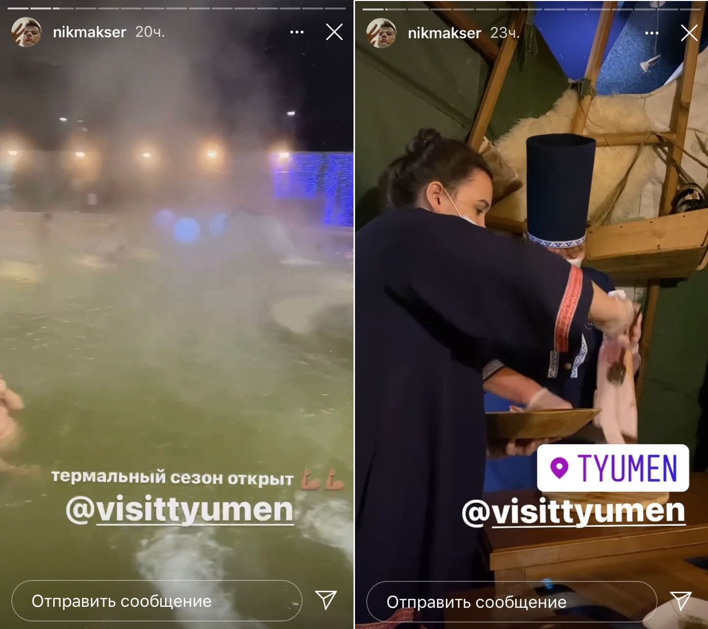 «Всю жизнь хотел побывать на горячих источниках. Это очень круто. Чтобы вы понимали: на улице идет снег, а ты плаваешь в горячем бассейне. Все классно», — рассказывает блогер.