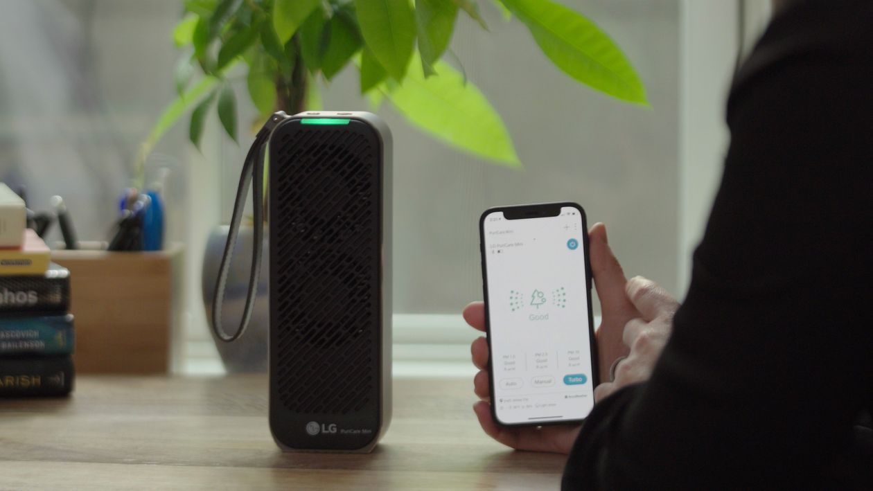 Также на выставке был представлен мобильный очиститель воздуха PuriCare от LG: помимо респираторного датчика, он имеет встроенные вентиляторы, HEPA-фильтр и систему очистки воздуха для защиты пользователя. Пока что он доступен только в Гонконге, Тайване и Ираке, но в скором времени планируется выход на другие страны.