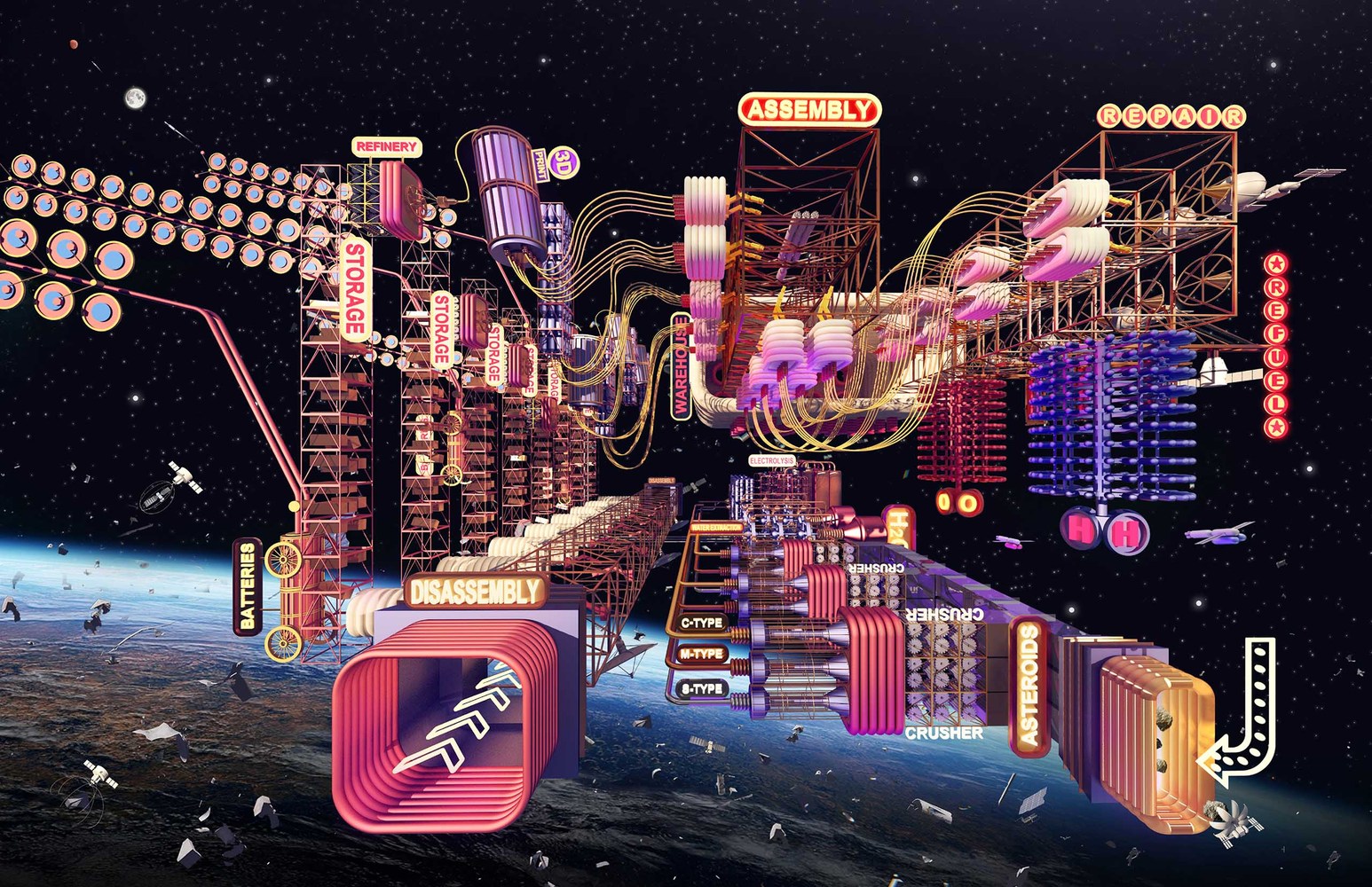 Третья премия достается Терезе Лейк и Вильгельму Шерубль из коллектива TAB. «Когда думаешь об Outerspace, сразу приходит на ум видение новых достижений в технологиях будущего, сопровождающая их эйфория и открытие захватывающих миров. Но через несколько секунд после иллюзий о безграничных возможностях все это имеет неприятный привкус — почему мы так стремимся открыть новую планету, такую как Земля, и что это на самом деле означает для нашего мира? Наш рассказ посвящен именно этой теме. Тонким и поэтическим образом необходимость мусорщиков во Вселенной указывает на распад нашей нынешней планеты и человечества», — рассказали архитекторы.