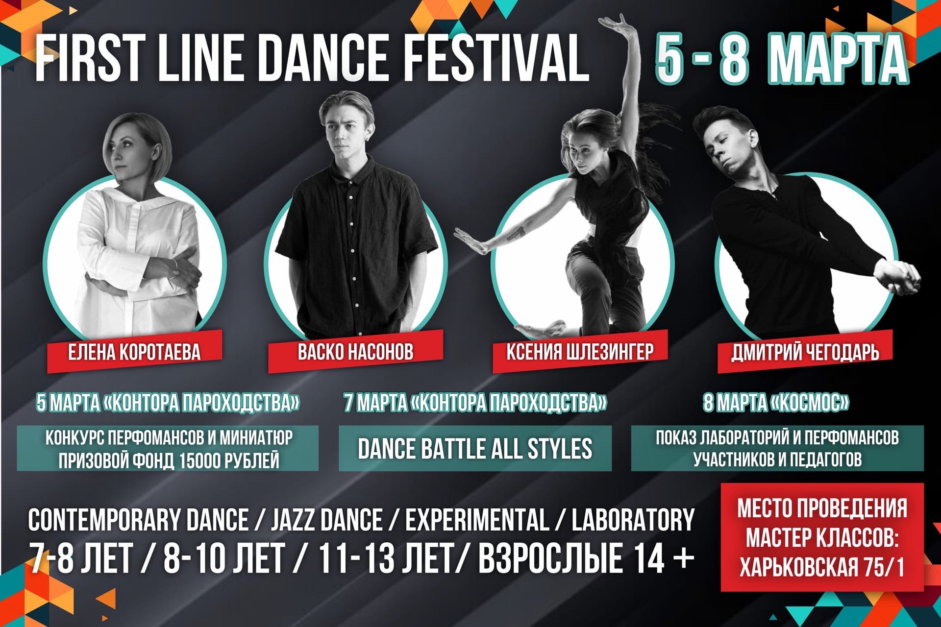В рамках фестиваля также предусмотрены мастер-классы, которые будут проходить в залах танцевального клуба «Visàvis» на улице Харьковской, 75/1. На них гости смогут узнать, как переносить вес в танце, использовать свои лимиты для начала движения и многое другое.