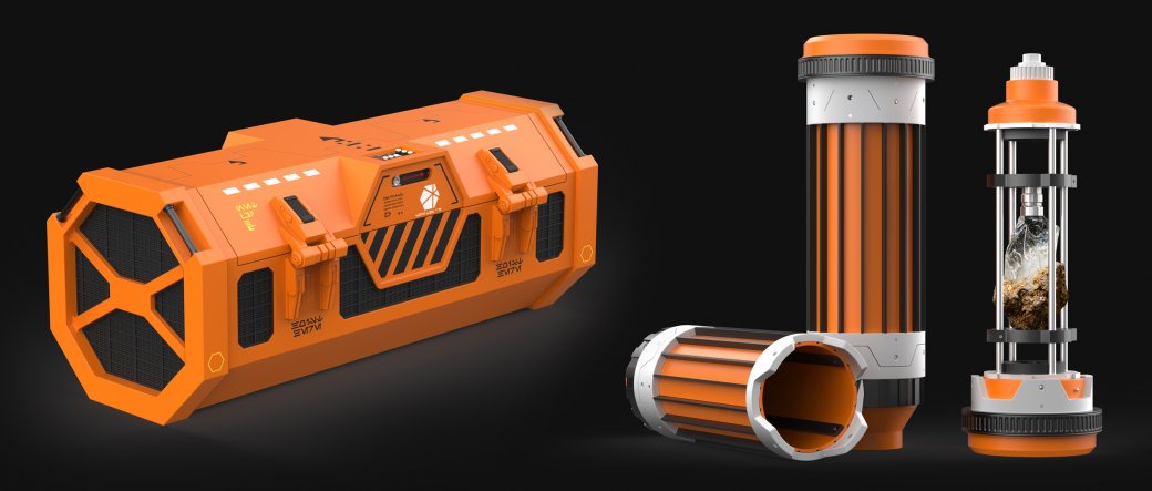 Футляр для них сделали в виде копии транспортного контейнера для перевозки кибер-кристаллов, также там есть дополнительные отделения для хранения. Также в комплекте идут три набора ремешков.