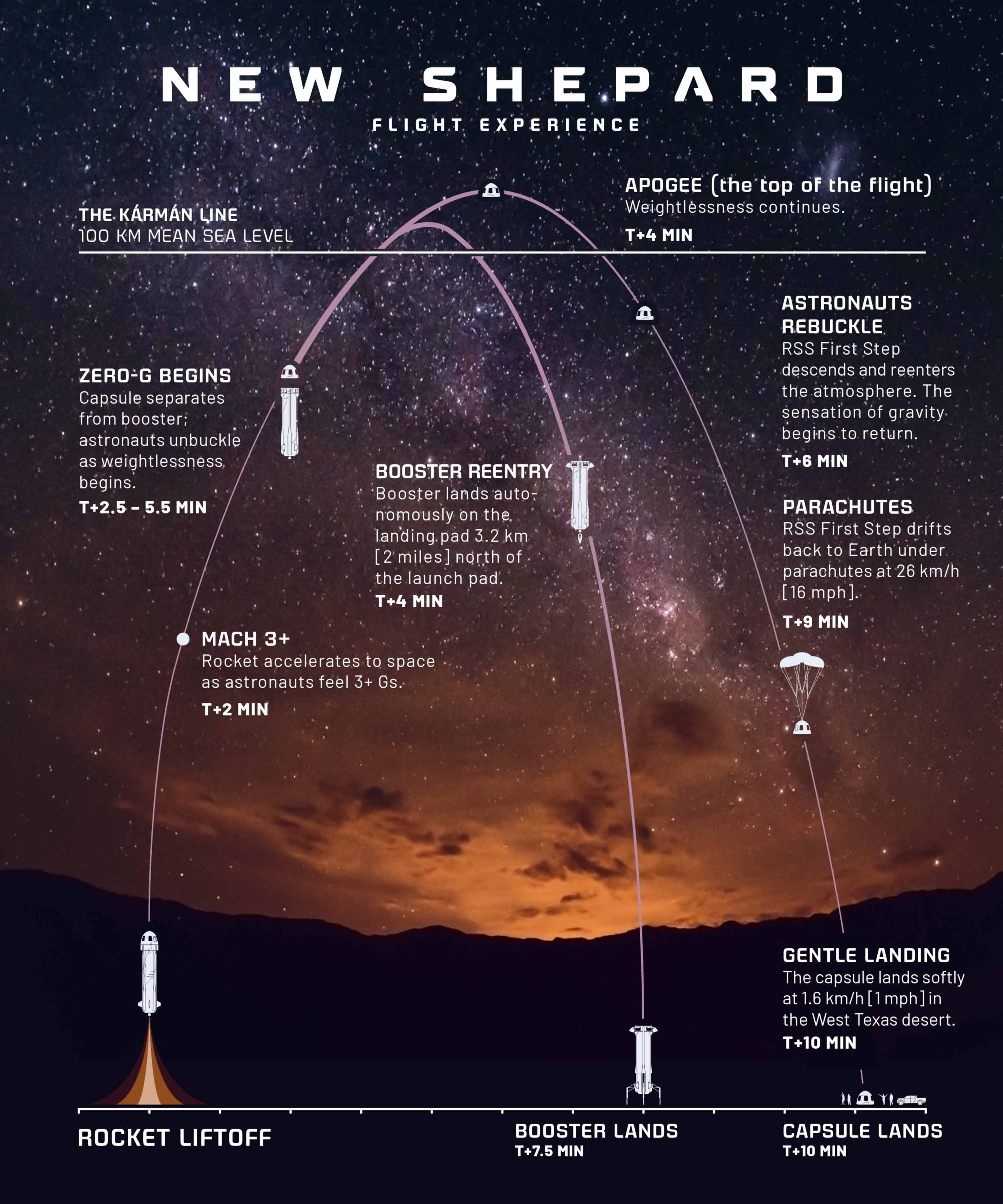 Полет пройдет на многоразовой ракете New Shepard. Победитель аукциона будет помещен в герметичную капсулу. В ней он достигнет апогея, пробудет в невесомости несколько минут и отправится на Землю с помощью специальных парашютов.