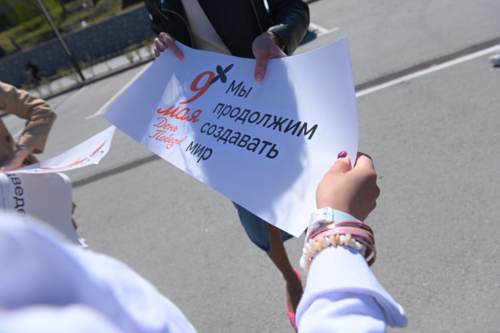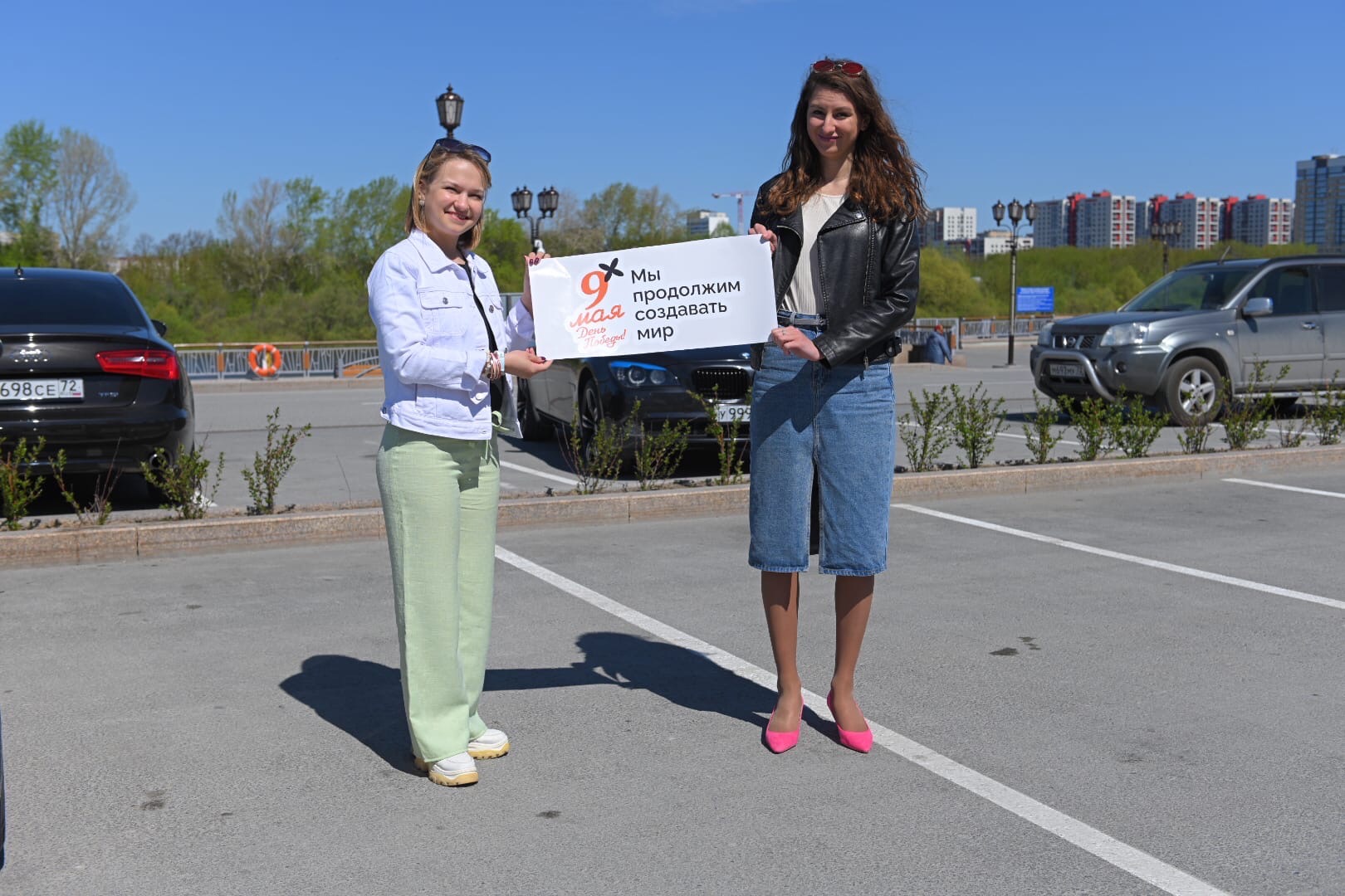 Затем куратор Медиацентра молодежной политики Тюменской области и организатор акции Александра Оверченко разместила на автомобиле вторую наклейку. На ней изображены тянущиеся друг к другу руки с надписью «Мир на земле в наших руках».«С каждым годом праздник 9 мая теряет свою культуру. Чем больше мы будем вспоминать о положительных и светлых сторонах праздника, тем больше День Победы будет отражать свою суть. С каждым годом ветеранов становится меньше, и вместе с ними мы хотим донести мысль о том, как важно не повторить, а сохранить мир», — рассказала редакции Moi-portal.ru Анастасия Егорова.