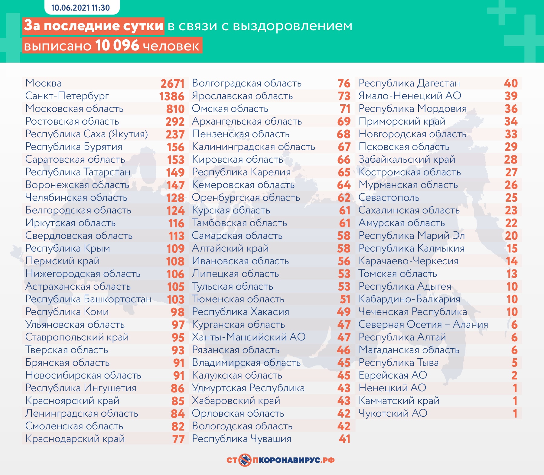 За все время пандемии в России зарегистрировано 5 167 949 случаев коронавирусной инфекции, а число выписанных пациентов выросло до 4 771 995. Количество летальных случаев перевалило за 125 тысяч и составляет 125 278.