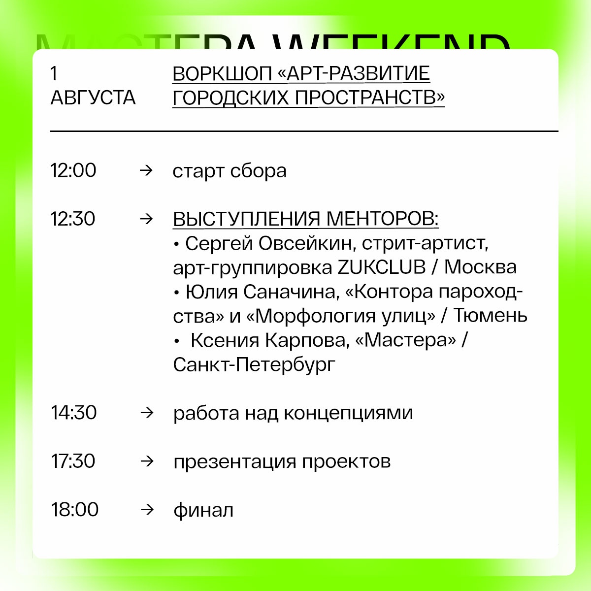 В Тюмень приедут «Мастера», которые проводят образовательные встречи в разных городах России. 31 июля и 1 августа они в партнерстве с «Конторой пароходства» и фестивалем «Морфология улиц» проведут в городе интенсив.